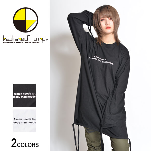 【20%OFF★クーポン配布中】backside of tokyo(バックサイドオブトーキョー)ロゴプリント紐ロングTシャツ(男女兼用)■トップス 長袖Tシャツ ロング丈 インナー ロゴプリント クルーネック ビッグシルエット シンプル ストリート モード カジュアル メンズ レディース ユ