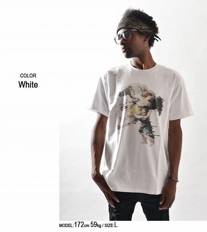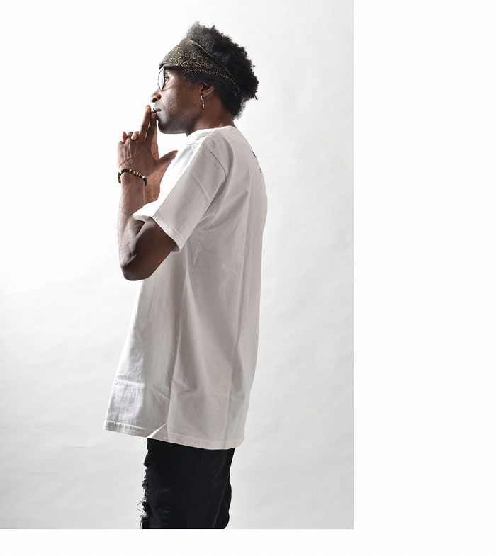 Model メンズモデル: 身長:172cm 体重:59kg 着用サイズ:ブラック・Lサイズ、ホワイト・Lサイズ サイズ(単位:cm) 肩幅 身幅 着丈 袖丈 M 46 53 73 20 L 47 56 75 20 XL 50 59 77 21 素材 綿100% \★