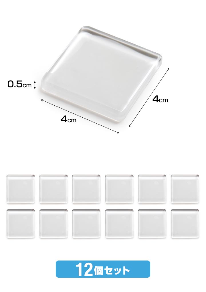 [こんな商品をお探しの方に] 耐震マット 耐震パッド 耐震ジェル 耐震ゲル ゲルマット PU樹脂 樹脂マット ゴムマット シリコンマット 粘着マット 粘着シート 両面粘着パッド 保護パッド 転倒防止マット 転倒防止パッド 転倒防止シート 転倒防止シール ストッパー ゲル 両面テープ 粘着ゴム ゴム脚 滑り止め すべり止め ズレ防止 キズ防止 傷防止 保護マット 貼るだけ 正方形 角型 転倒防止 落下防止 地震対策 防災対策 地震対策 防災対策 耐震グッズ 固定グッズ 転倒防止グッズ 地震対策グッズ 防災グッズ 地震 耐震 免震 揺れ 静振 振動吸収 振動抑制 静音 家電 テレビ TV PCモニター パソコン OA機器 冷蔵庫 電子レンジ オーブンレンジ 家具 食器棚 本棚 書棚 新生活 引越し 一人暮らし ひとり暮らし シングルライフ 単身赴任 和室 洋室 リビング センター ソファ ソファー チェア 椅子 チェア ベッド 応接 オフィス ワンルーム 一人掛け 二人掛け テレワーク 在宅ワーク 在宅勤務 リモートワーク 巣ごもり 外出自粛 インテリア・寝具・収納 ソファ・ソファベッド ソファ・ソファベッド用部品 日用品雑貨・文房具・手芸 防災関連グッズ 家具転倒防止用品 耐震用接着マット・ストッパー おしゃれ オシャレ お洒落 目立たない キッチン 日用品 文具 防災 防犯 セーフティ商品詳細 セット内容: 12個入り サイズ: (約)幅4×奥行4×厚み0.5cm 重量: (約)8g ※1枚の重量目安となります。