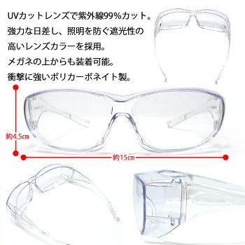 ●カラー:クリア●材 質:ポリカーボネイト樹脂、●仕 様:UVカット(UV400)、内面曇り止め加工、 眼鏡併用可能・マスク併用可能●生産国:台湾 2